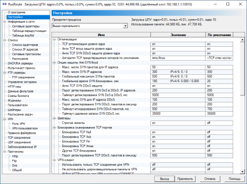 Новое в версии: + Реализован алгоритм анти TCP DDoS флуд защиты для IPv4 и IPv6 на уровне ядра (ранее алгоритм работал только в пользовательском режиме).+ Реализован алгоритм анти TCP SYN DDoS защиты для IPv4 и IPv6 на уровне ядра и в пользовательском режиме. + Изменение в лицензионной политике: демо-версия имеет пробный период 7 дней, который может быть увеличен до 15 дней в случае, если вам не хватает времени на оплату лицензии к программе. - Исправлена ошибка работы с не инициализированными индексами массивов номеров портов NAT.
