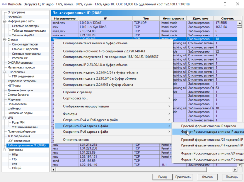распаковать в каталог (например, c:\rusroute\blacklists)