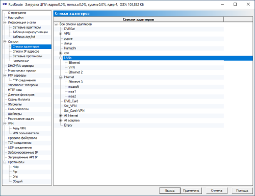 VPN адаптер - выберите VPN адаптер из списка. VPN адаптер добавляется в систему при установке фаервола RusRoute.