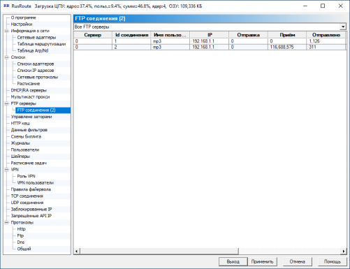 Скорость передачи по FTP через VPN составляет около 300 Мбит/с между двумя ПК класса I7-7700K с Windows 10 x64 22H2, версия RusRoute 3.3.9, драйвер v.3.38-220, в гигабитной локальной Ethernet сети.