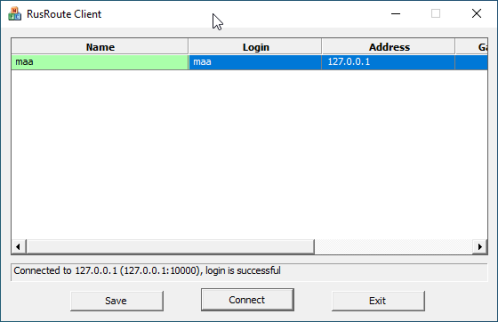 Вторичный VPN сервер - RusRoute устанавливает VPN соединение на первичный или другой вторичный VPN сервер, указанный ниже, с указанными параметрами именем пользователя и паролем, и запускает сервер на TCP порту 10005 и UDP серверы на портах 10005 (VPN сервер) и 10004 (VPN клиент) для подключения других пользователей через данный сервер (который называется вторичным) к основному серверу. Удобство применения вторичных серверов заключается в том, что связав виртуальной сетью два удалённых филиала, на дочернем запускают вторичный VPN сервер, который распределяет нагрузку на сеть VPN таким образом, что если два VPN пользователя, подключенных к одному и тому же вторичному VPN серверу, обмениваются сообщениями, то эти сообщения перенаправляются напрямую от одного клиента к другому через их вторичный сервер, минуя основной VPN сервер.