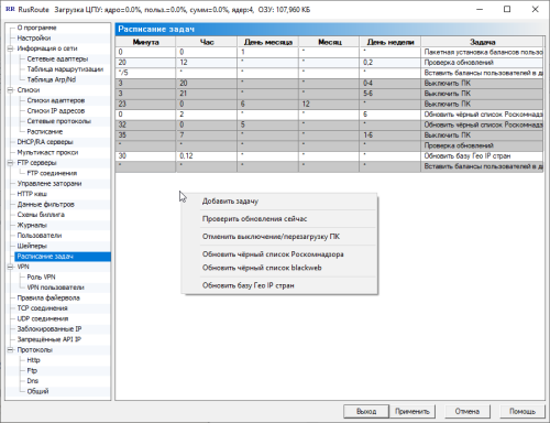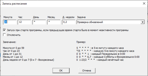 Расписание задач предназначено для запуска определённых действий в программе в определённое время (периодически, по расписанию). На картинке 1 вы видите, как проверять обновления, в начале каждого месяца автоматически установить новые балансы пользователям, и каждые 5 минут записывать изменённые балансы в файл.