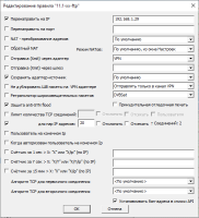 Шлюз - опционально, здесь можно указать виртуальный IP адрес какого-нибудь VPN клиента для использования его в качестве шлюза по умолчанию (например, для удалённого выхода в Интернет из другой удалённой сети). В этом случае, для корректного выхода в Интернет, возможно, вам потребуется настроить маршруты с помощью системной программы route.exe или с использованием специальных опций правил фаервола RusRoute (для VPN подключений). Смотрите также route /?