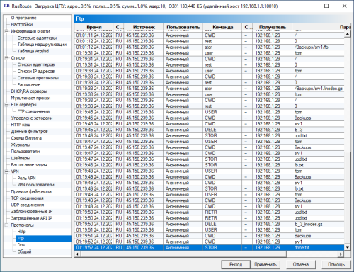 Наиболее необходимые и интересные записи о процессах, происходящих в сети и внутри фаервола RusRoute.