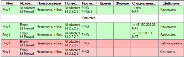 СплиттерСплиттер для Ping1 Для создания сплиттера нужно сразу после правила ветвления создать сплиттер и требуемое число дополнительных правил-альтернатив ветвления (пример на рисунке) с такими же именами, что и первое правило. При первом совпадении с правилом ветвления выбирается первое правило, при втором - первое альтернативное и т.д. циклически.